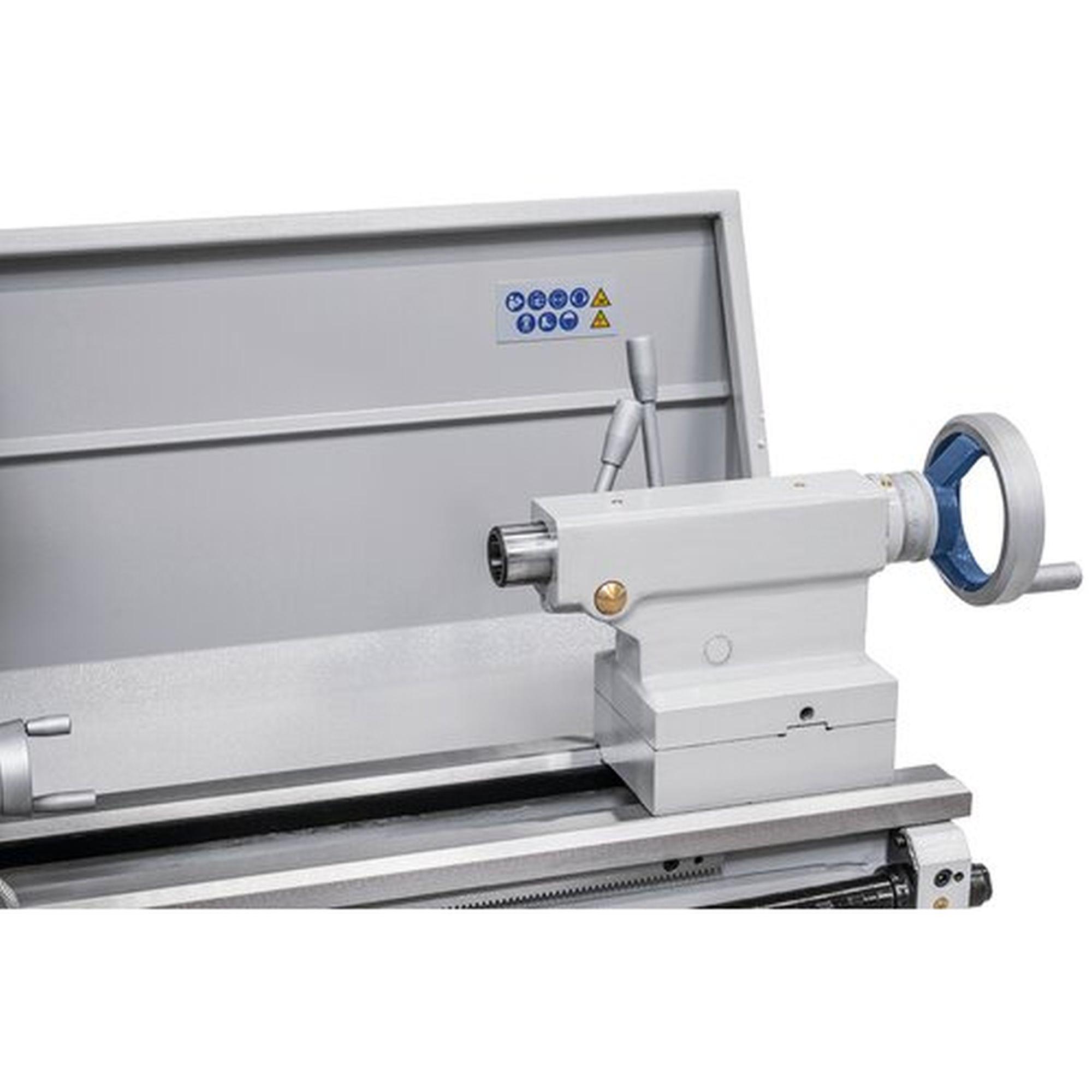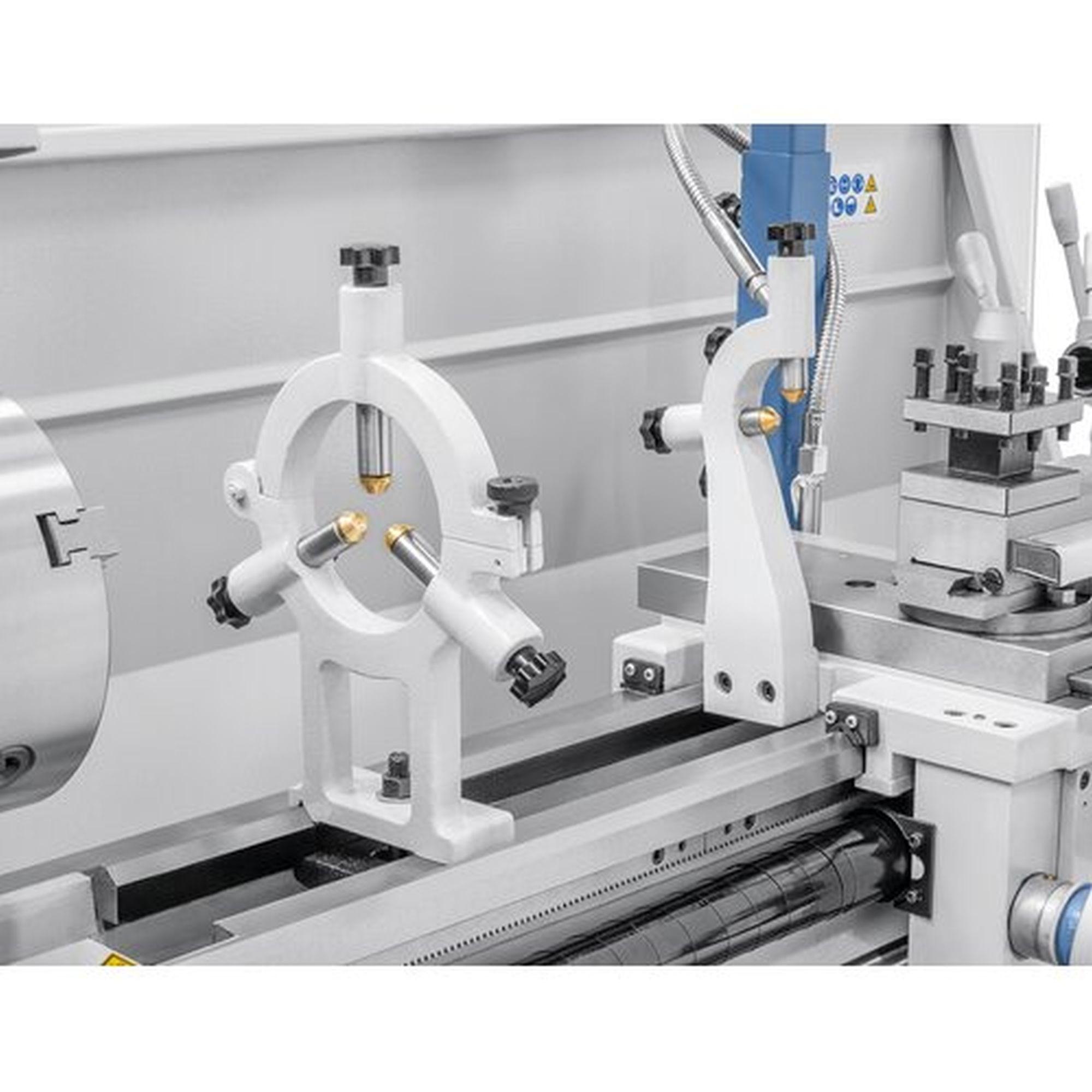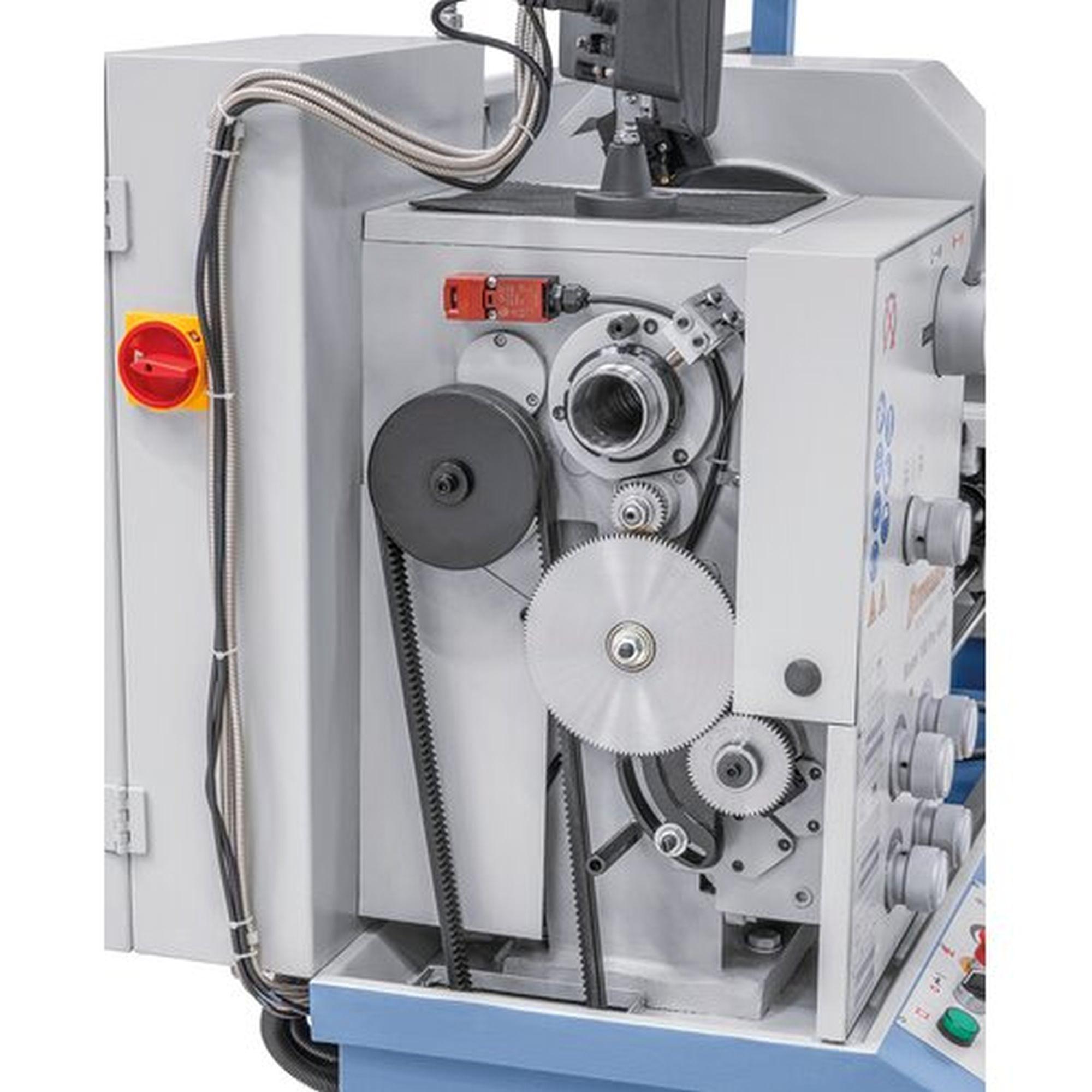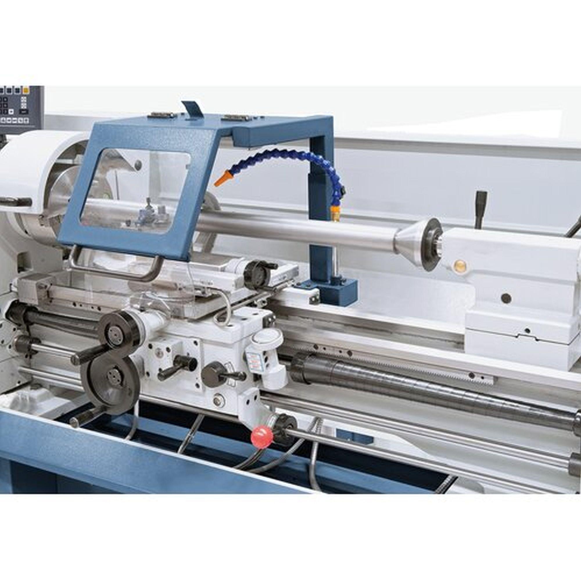 Fokozatmentes sebességállítás, a beállított sebesség digitális kijelzőn olvasható. 52 mm-es orsófurat a nagy tengelyátmérők megmunkálásához alapfelszereltség.