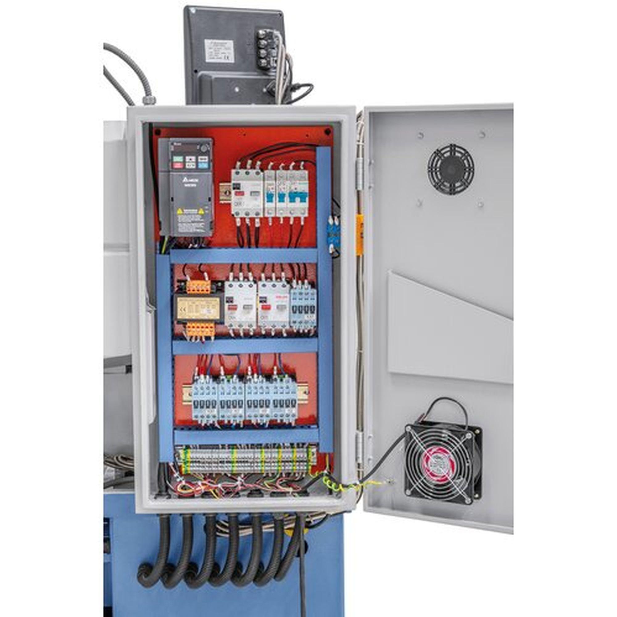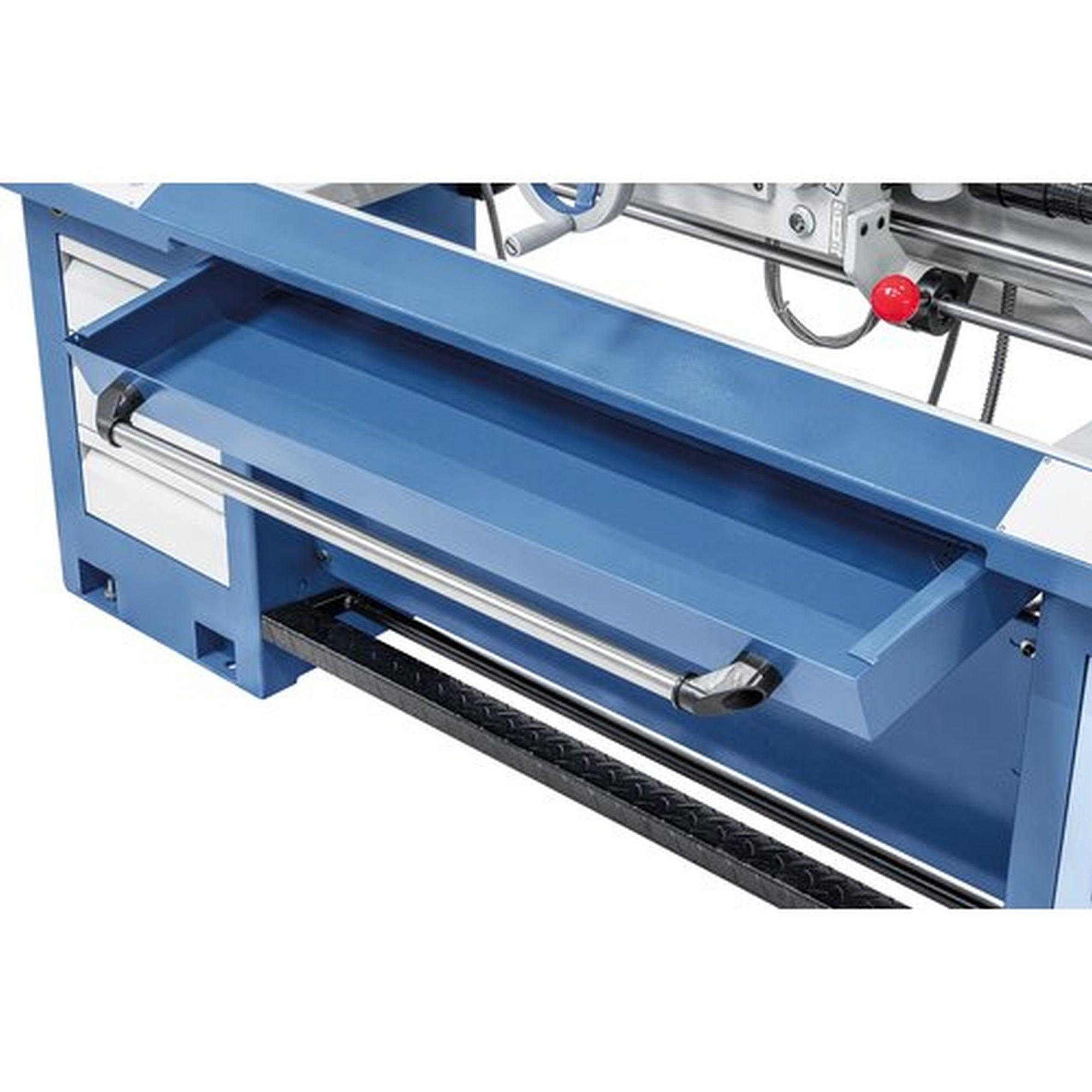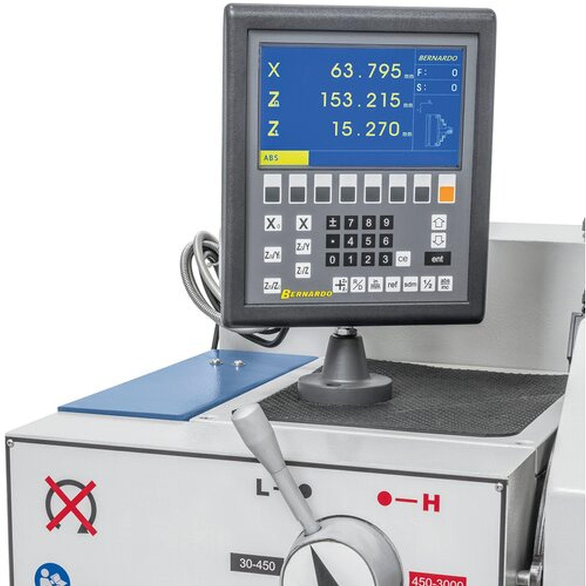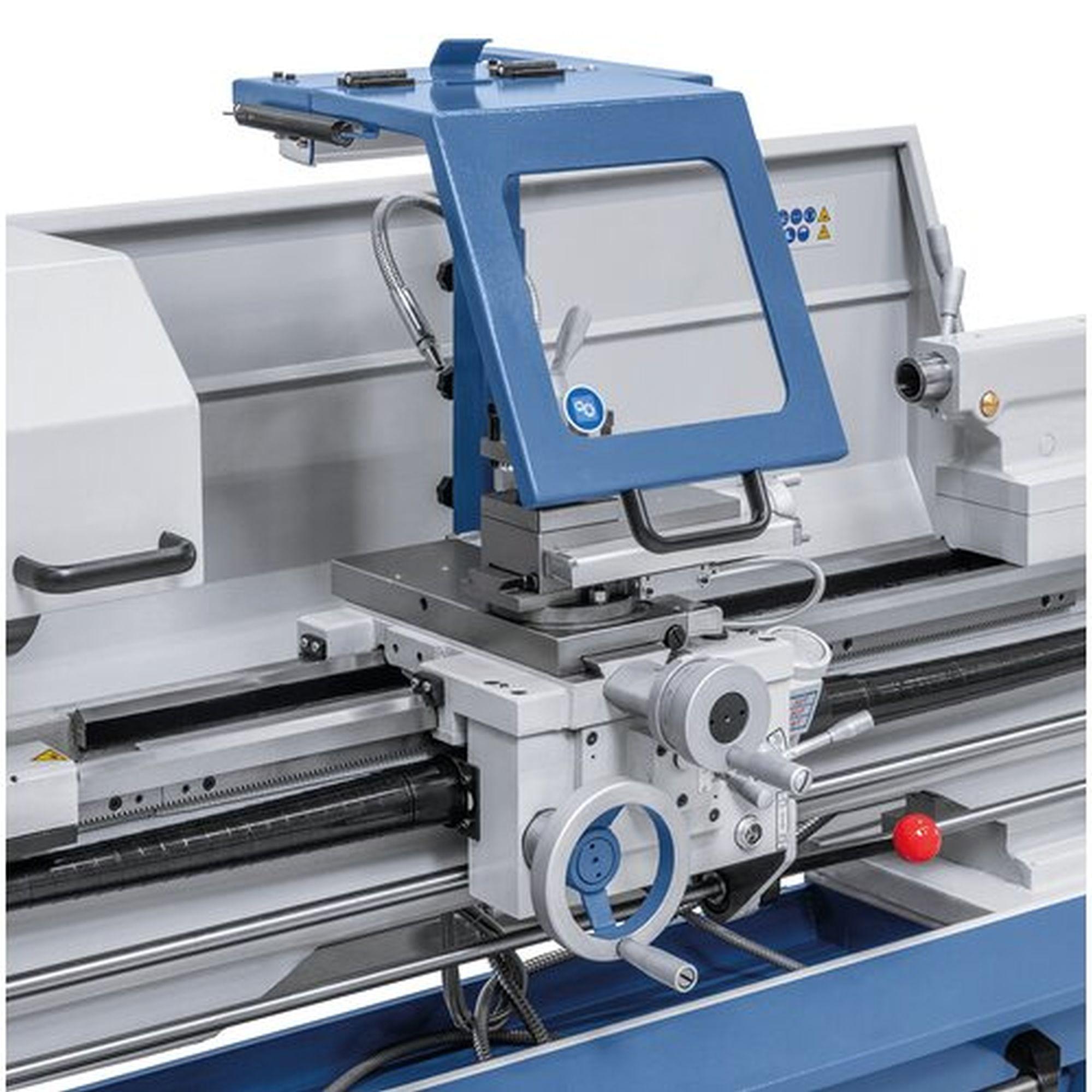 Fokozatmentes sebességállítás, a beállított sebesség digitális kijelzőn olvasható. 52 mm-es orsófurat a nagy tengelyátmérők megmunkálásához alapfelszereltség.