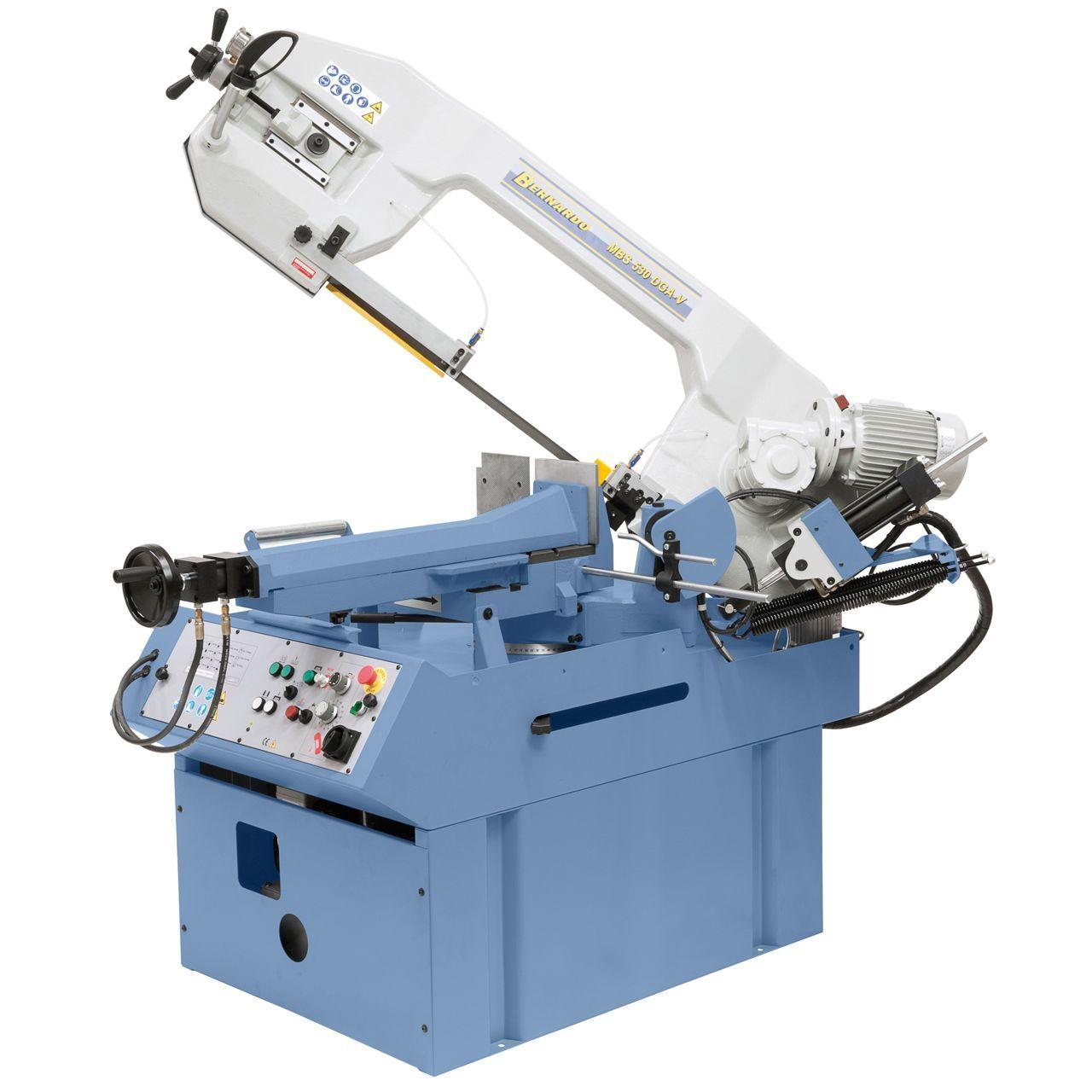 Az MBS 530 DGA-V modell egy félautomatikus kettõs-sarkaló szalagfûrész 60°-ig történõ sarkalatvágásokhoz. A fokozatmentes forgácsolási sebesség, valamint a hidraulikus satu lehetõvé teszi a kényelmes munkát. Ez a modell a szolid felépítési módja által precíz vágási képet garantál üreges profilok, tömöranyagok, nemesacél, szerszámacél stb. vágásánál. Ennek a gépnek az alkalmazási területei a lakatosmûhelyek, szerelõüzemek, a forma- és szerszámgyártás, ...