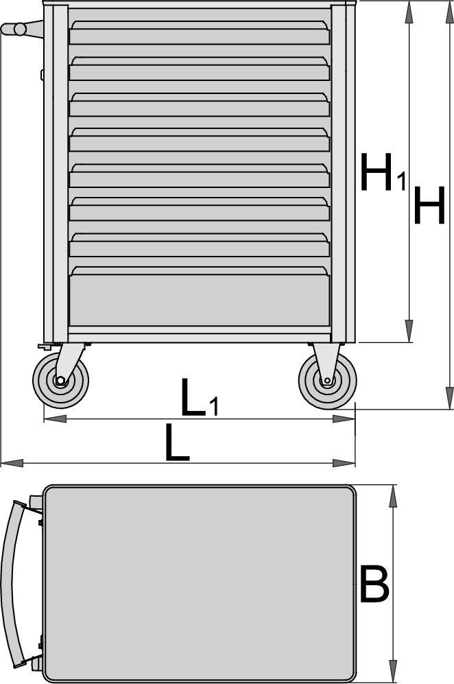 8 fiókkal (7x H 563 x Sz 365 x M 70 mm, 1x H 563 x Sz 383 x M 150 mm)