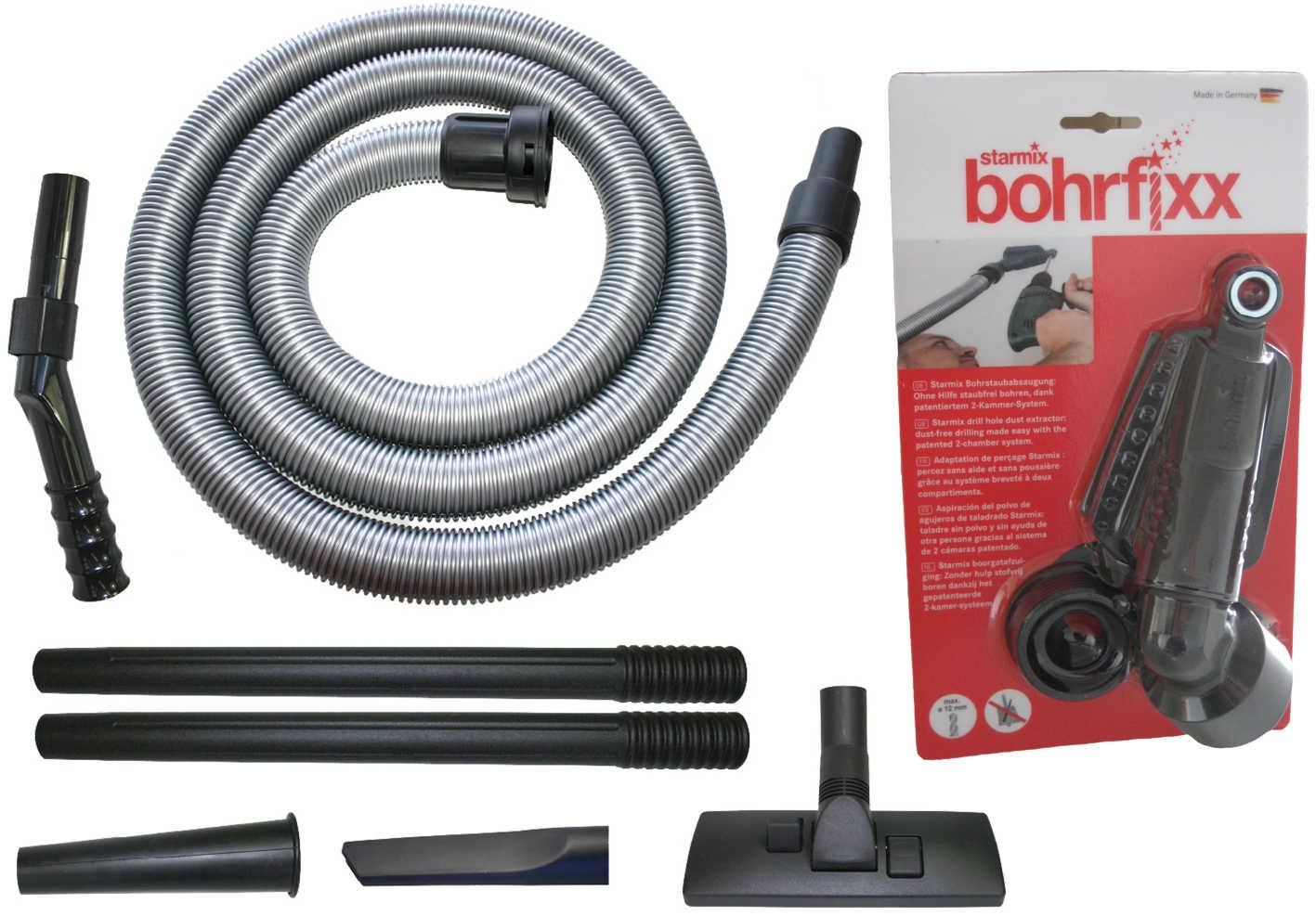 1db gégecsõ, 1db fogócsõ, 2db 50cm-es szívócsõ, 1db 22cm-es fugaszívó, 1db 23cm-es gumi szívócsonk, 1db 25cm-es univ. szívófej, 1db bohrfixx fúráshoz.